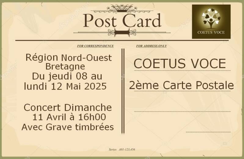 Le second vogage "Carte Postale 2" se déroulera du Jeudi 08 au Lundi 12 Mai 2025 dans le Nord-Ouest de la France et dont 50 choristes du Coetus Voce font partis du voyage.